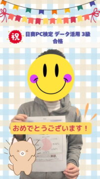 資格取得2026年2月25日利用者さんが日商PC検定 データ活用 3級に合格しました!